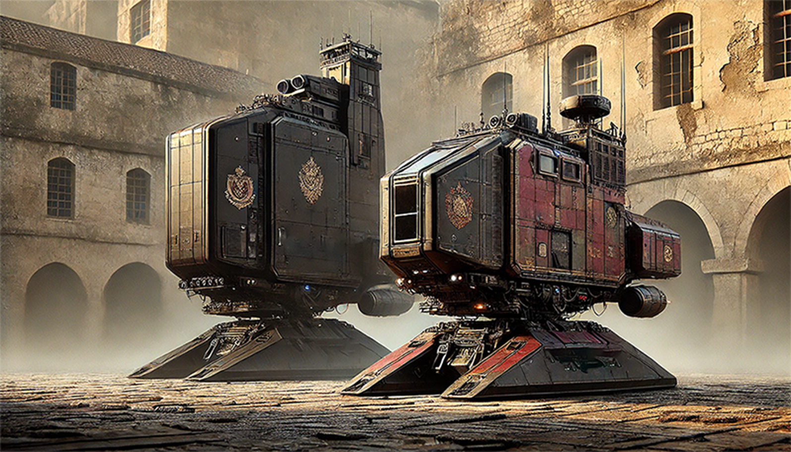 Towering and stately, Levants serve as the formal transports for governors, Guild liaisons, and foreign dignitaries across Aerias. Their reinforced exteriors and dampened propulsion systems offer a smooth, secure ride—while projecting power wherever they land. Most are emblazoned with the crest of their sovereign House or station.