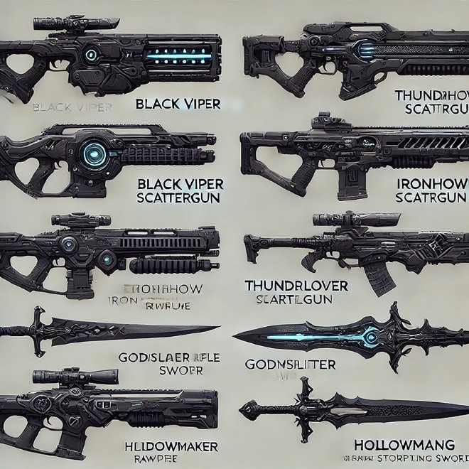 Classified inventory of hybrid weapons and modified firearms issued to Immortals and Knight-Guard operatives. Many are crafted from Obsidian Alloy or Echo-Tempered steel, calibrated for high-impact engagements with both mortal and non-mortal threats.